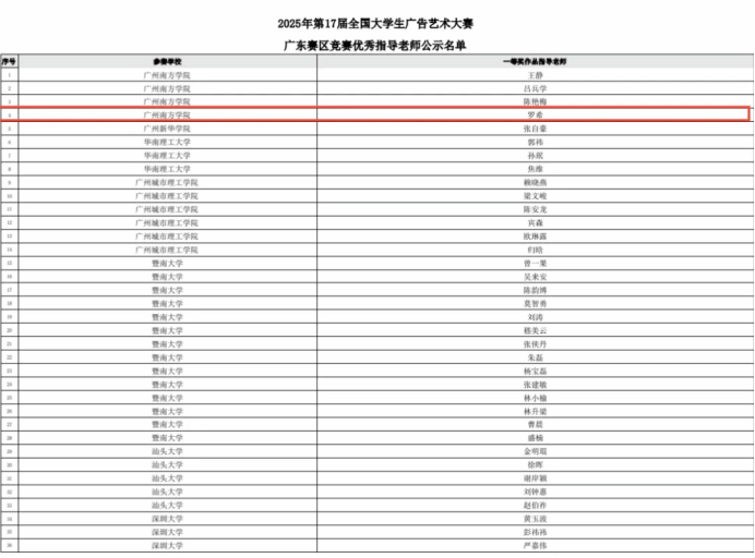 在全国大学生广告艺术大赛(大广赛)中,太阳成集团tyc234cc主页师生再创佳绩,共有20项作品脱颖而出,分获各赛道奖项;罗希老师荣获广东赛区“优秀指导教师”称号,为学院再添荣光。