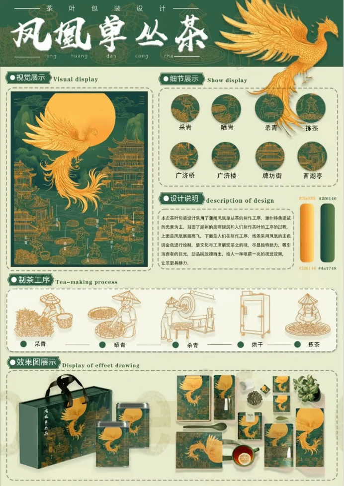 网络与新媒体专业张新宝老师对该作品给予了高度评价。他表示,《潮州·凤凰单丛茶包装设计》这件作品通过挖掘乡村土特产的独特价值,将传统工艺、地域符号、自然生态与国潮现代文化相结合,把学生家乡的土特产转化为现代设计语言,用艺术赋能乡村地方文化产业的发展。