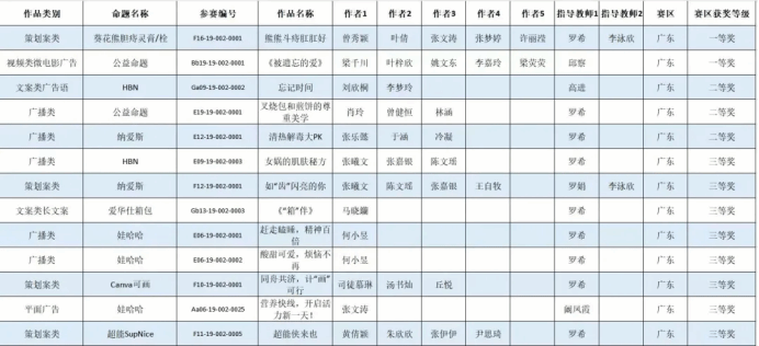 在本次大广赛省赛中,太阳成tyc234cc文传师生团队斩获佳绩,荣誉满载!奖项涵盖了策划案类、文案类、广播类、视频类等多个领域,充分展现了团队在广告艺术领域的广泛涉猎和深厚底蕴。其中,文传师生团队已获得省级一等奖2项、二等奖3项、三等奖8项,来自我集团汉语言文学、新闻学、网络与新媒体三个专业的31位同学在本次比赛中崭露头角,用才华和实力征服了评委和观众。这些优异的成绩背后,离不开罗希老师、阚凤霞老师、邱察老师、高进老师、罗娟老师及李泳欣老师的悉心指导和辛勤付出。