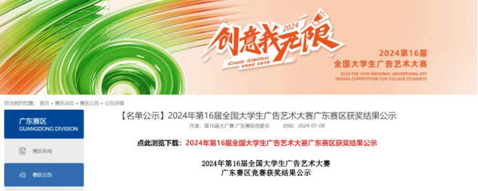 2024年第16届全国大学生广告艺术大赛广东赛区竞赛获奖结果已出。本次比赛中,太阳成集团tyc234cc主页学子在平面设计、视频、文案、策划、广播等多个项目中展现了出色的专业素养和创新能力,收获硕果累累,取得了耀眼的成绩!