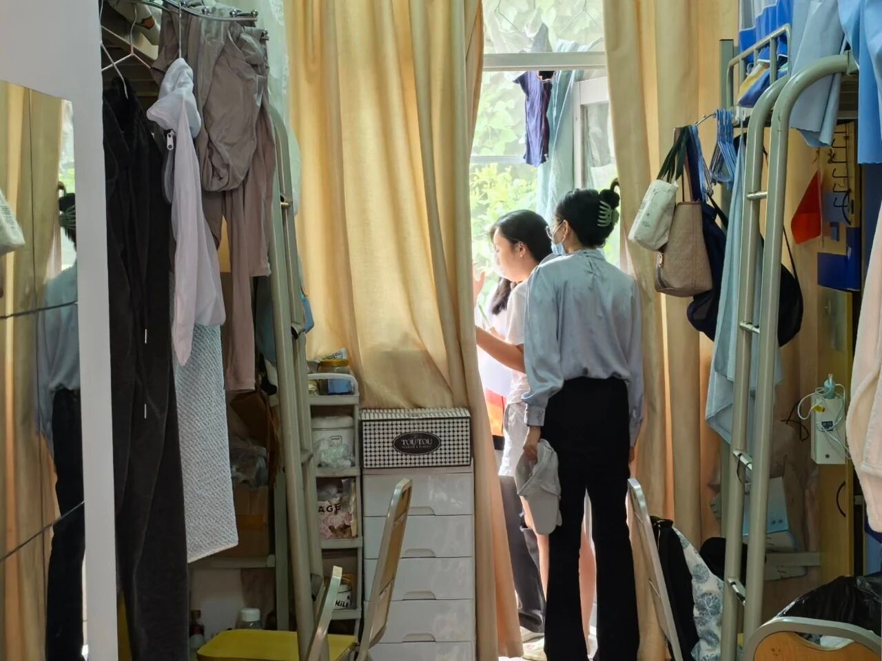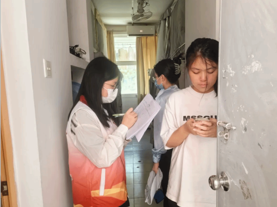 学院老师配合督导组检查工作人员进行宿舍入户检查