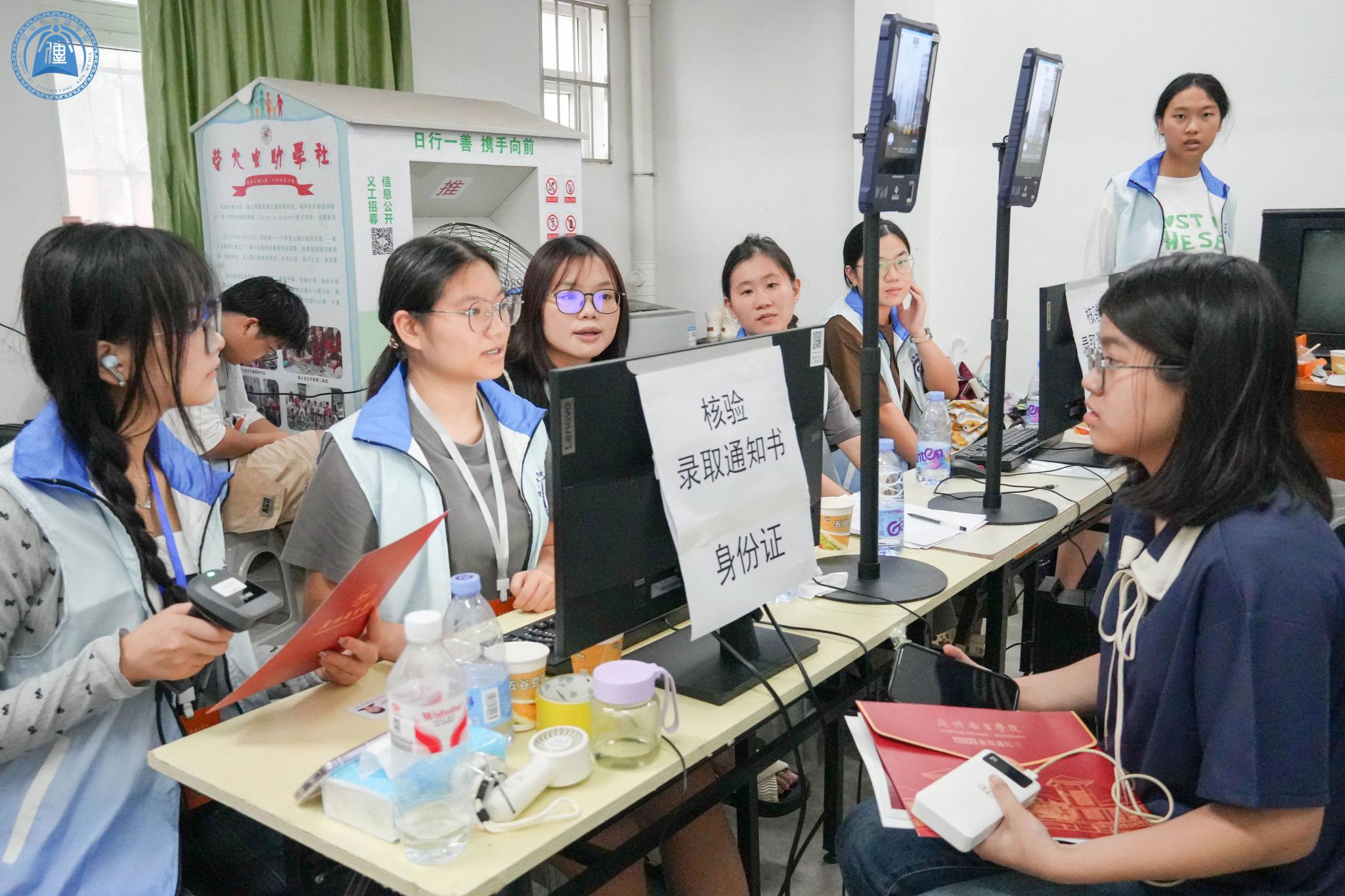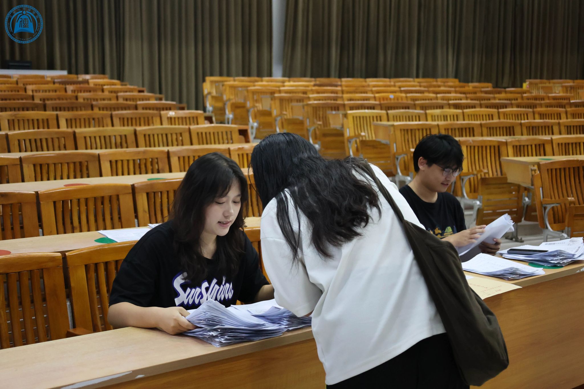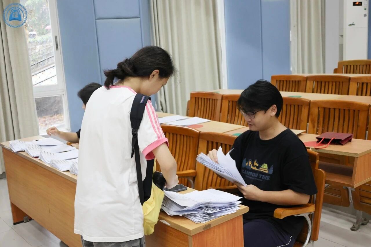 2025级朋辈辅导员们耐心收取新生入学材料并发放体检表