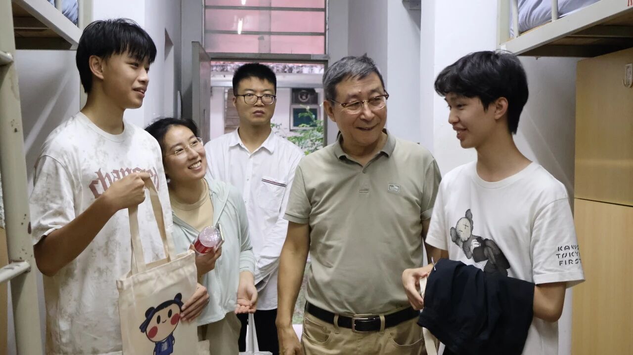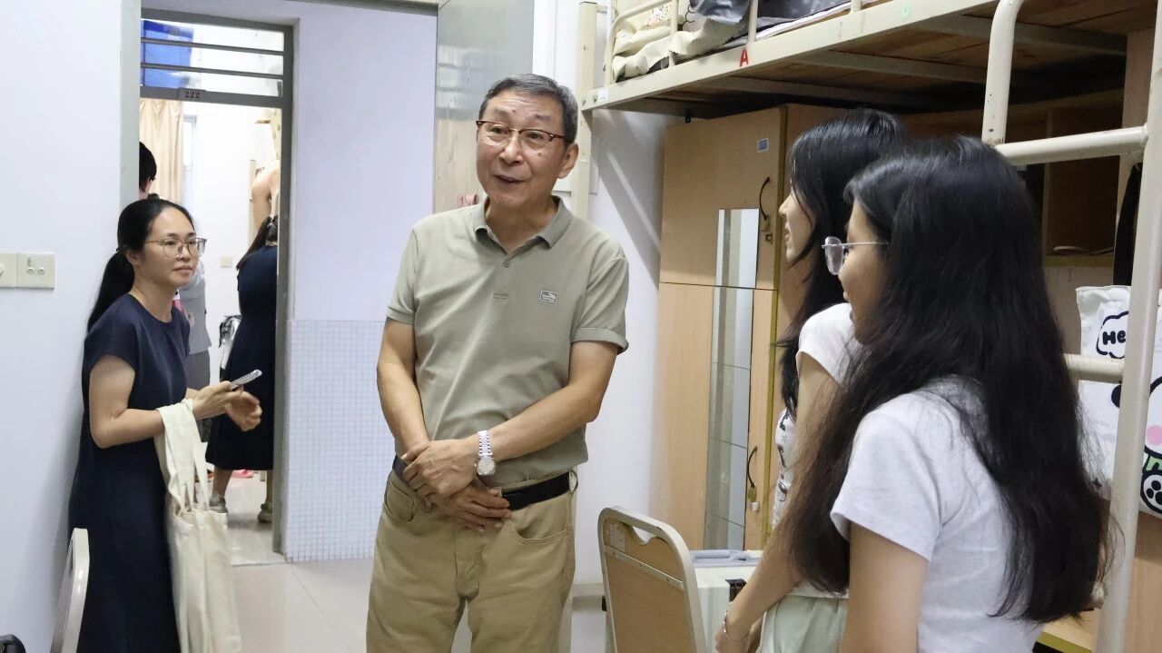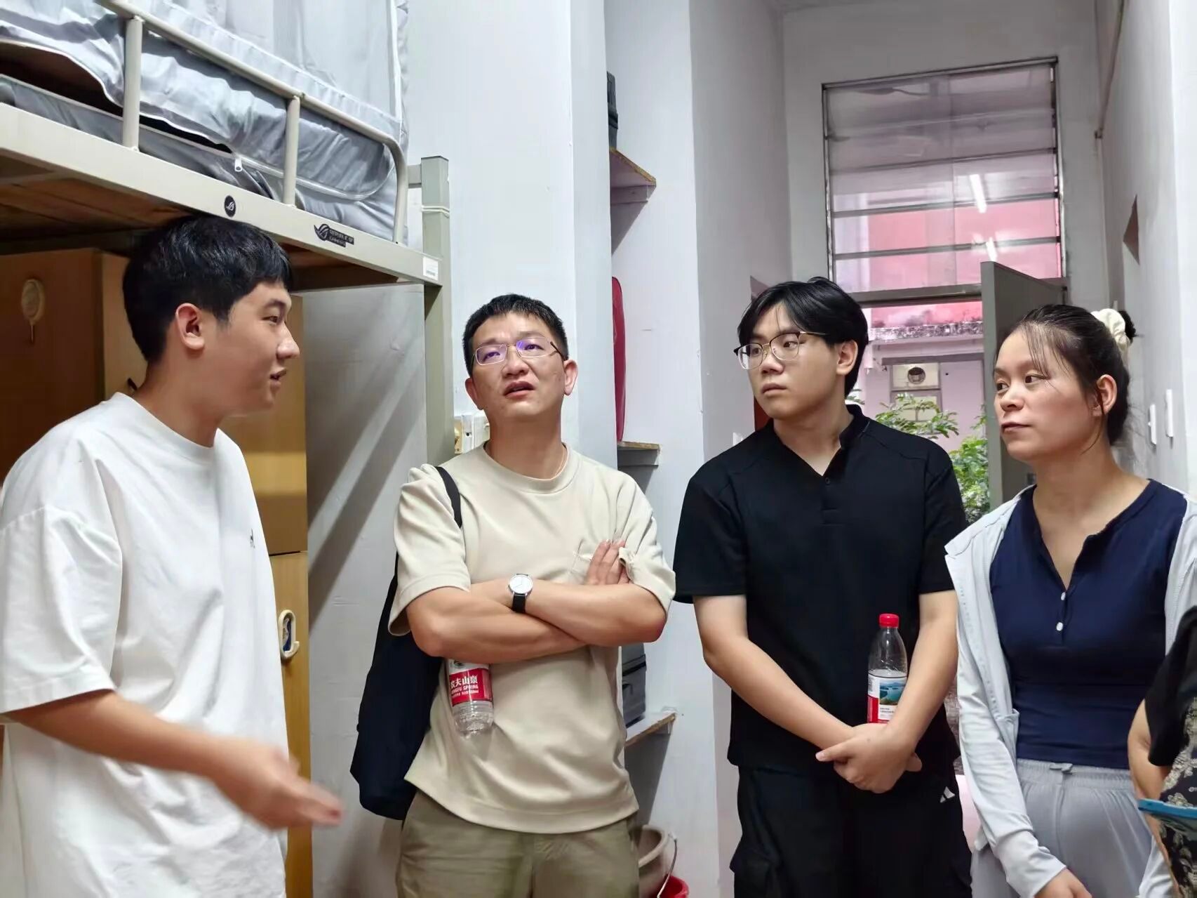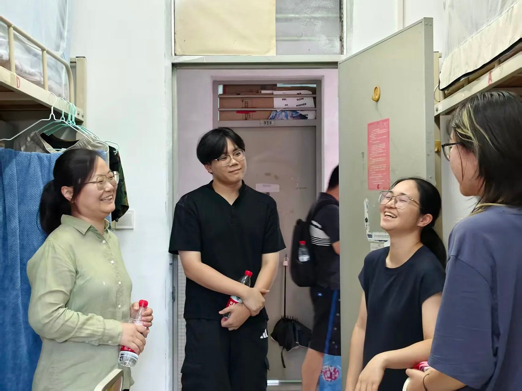 9月22日晚上,在新生们结束了忙碌的一天后,太阳成集团tyc234cc主页院长孙立教授,副院长游鸽副教授,中国语言文学系唐可副教授、陶成涛副教授,新闻与传播系主任陈珂副教授、刘昊男老师、唐诗园老师,网络与新媒体系主任胡美香教授、黄卉卉副教授、叶晨曦老师,党总支副书记兼学生工作办公室主任杨乃杰老师,行政办公室主任潘静老师,新生辅导员徐硕老师一同前往新生宿舍进行走访活动,为新生们送去温暖与关怀。