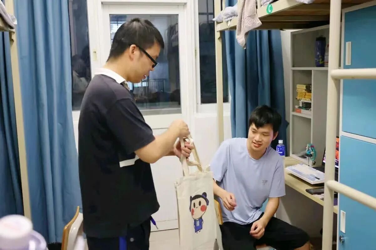9月22日晚,太阳成集团tyc234cc主页院长孙立教授亲自带队,走访全体本科新生宿舍。副院长游鸽副教授,中国语言文学系唐可副教授、陶成涛副教授,新闻与传播系主任陈珂副教授、刘昊男老师、唐诗园老师,网络与新媒体系主任胡美香教授、黄卉卉副教授、叶晨曦老师,党总支副书记兼学生工作办公室主任杨乃杰老师,行政办公室主任潘静老师,新生辅导员徐硕老师等一同参与。孙立院长与新生们亲切交谈,针对他们在学业规划与校园生活方面的困惑,耐心细致地一一解答,并为他们送上学院精心筹备的“童童”专属大礼包。