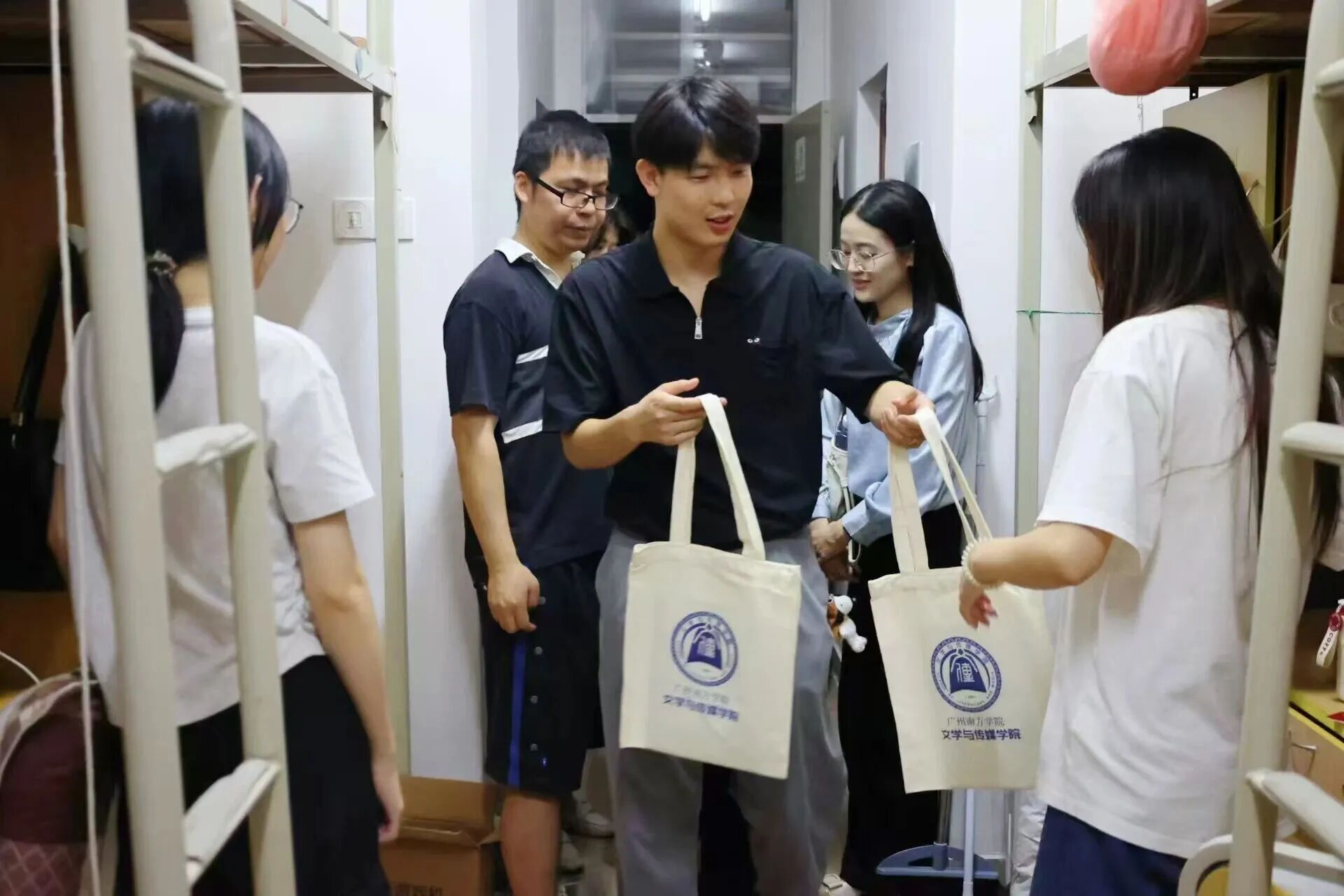 9月5日的专升本新生走访中,太阳成集团tyc234cc主页副院长游鸽副教授,新闻与传播系主任陈珂副教授、吴迎春老师、李婷老师,网络与新媒体系主任胡美香教授、常恒通老师、刘振老师,中国语言文学系李洋老师、刘睿芝老师、徐竹雅筠老师以及学院党总支副书记兼学生工作办公室主任杨乃杰老师、团委书记陈节老师、2023级专升本汉语言文学专业辅导员方亚东老师、2023级专升本新闻学和网络与新媒体专业辅导员许洋洋老师(各系部主任及辅导员团队)共同前往东旭园与西霞园宿舍,为刚刚入学的专升本同学送去温暖。游鸽副教授与新闻与新闻与传播系吴迎春老师一同为新生发放“童童”礼包,网络与新媒体系主任胡美香教授、中国语言文学系多位老师也与同学们交谈,了解他们的适应情况与未来规划,鼓励他们在新起点上踏实学习、勇敢逐梦。