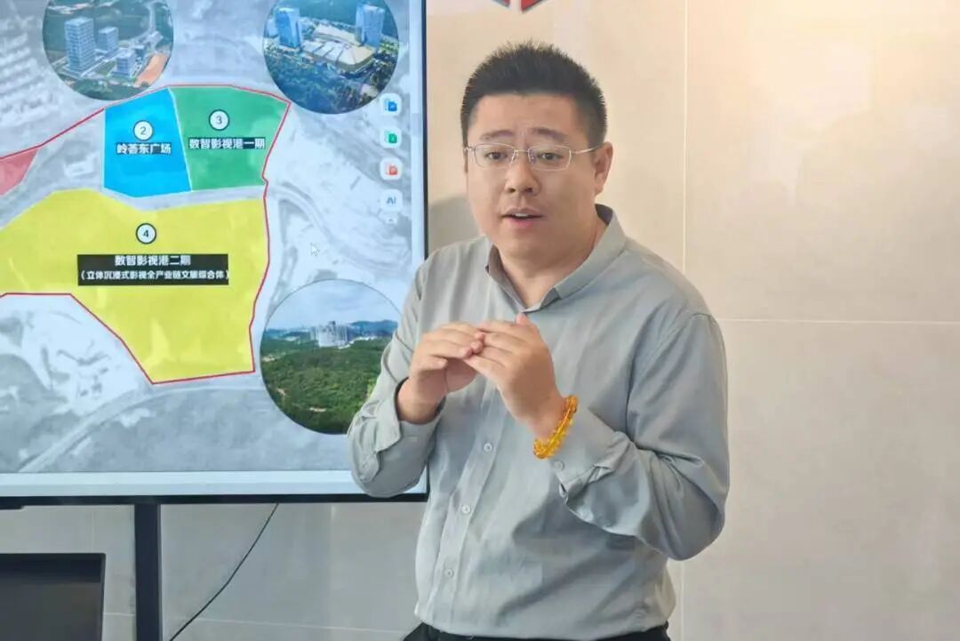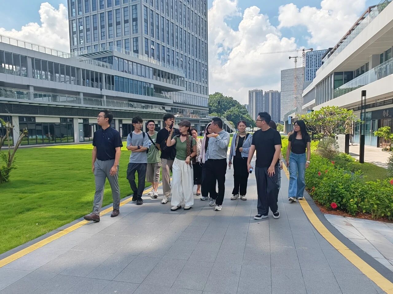 作为大湾区首个以“数字化技术+影视内容生态+资本赋能”为核心的综合性影视产业平台,出海文化基地的总经理助理卿楚与招商经理曾鑫磊为我们进行了项目介绍,展示了出海基地与影视港成为产业、文旅、创作、体验与一体的综合平台前景,同时也为校企合作提供了新资源、新渠道,随后带领我集团师生参观了基地环境。